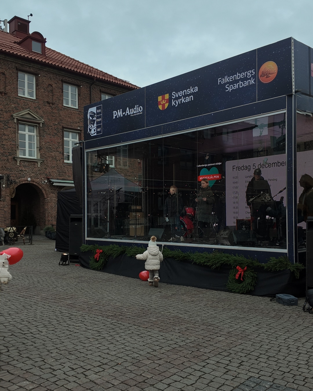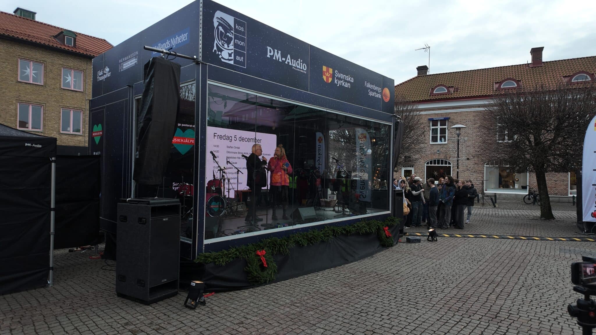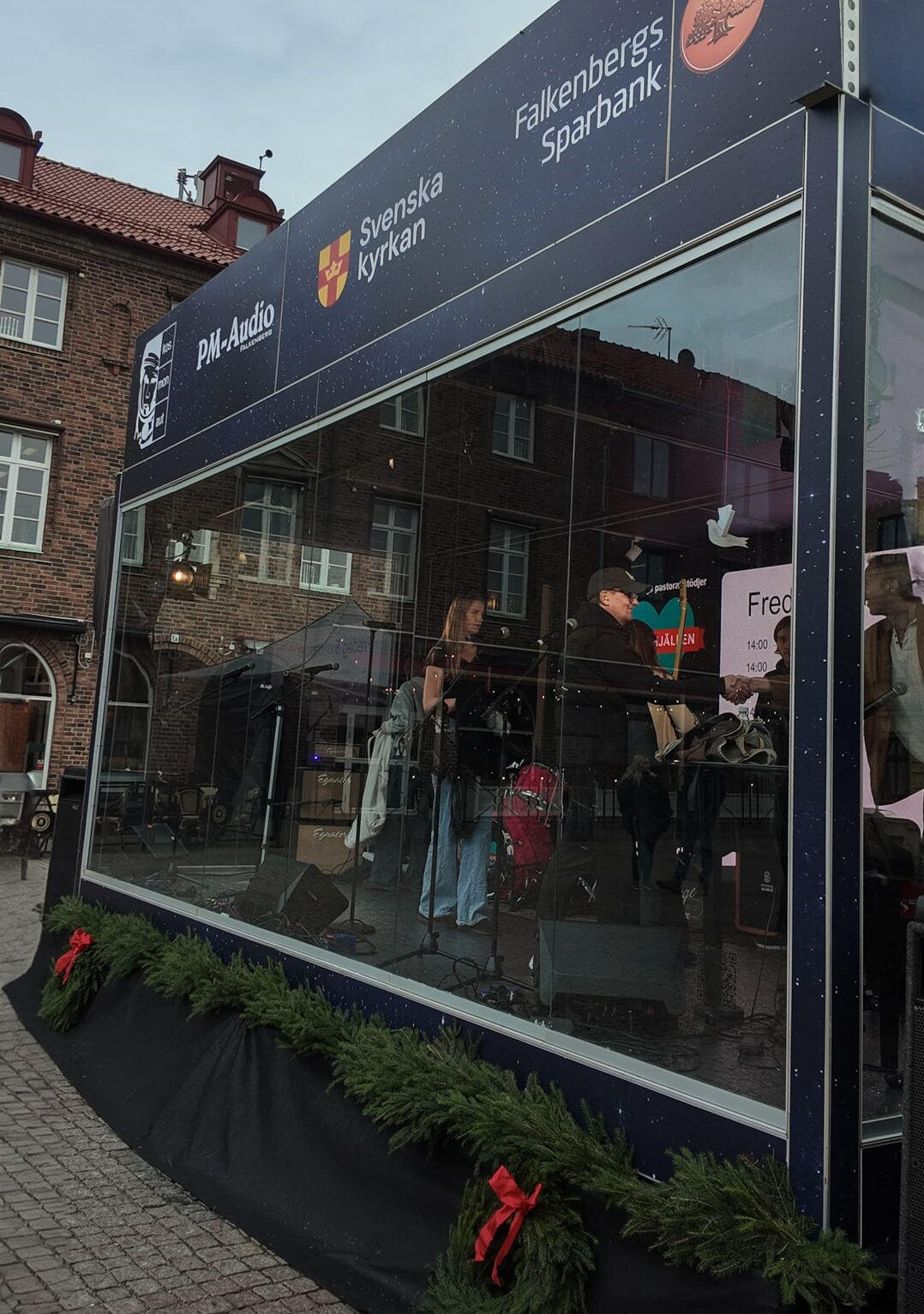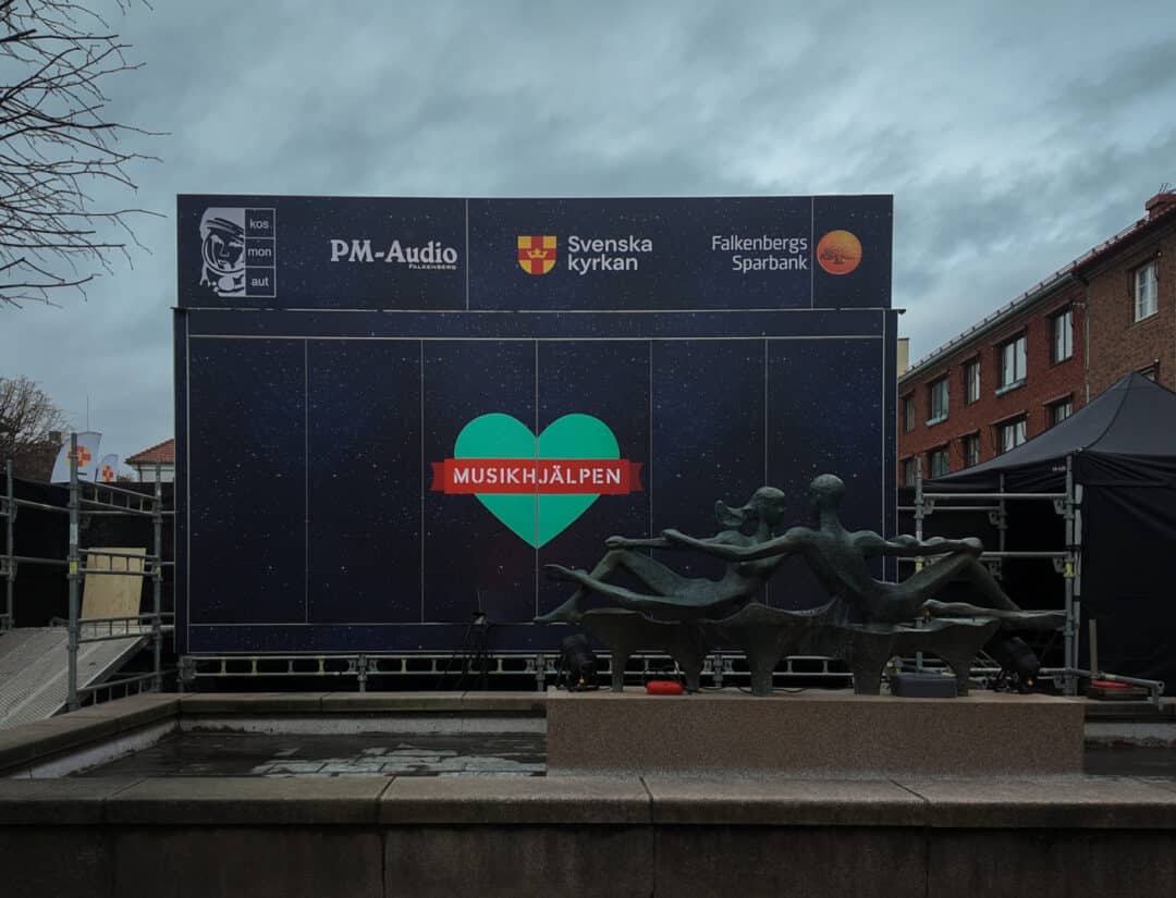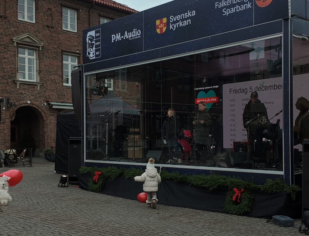 Falkenbergs lokala initiativ för Musikhjälpen – Vilken succé! Glasburen på Rådhustorget besöktes av olika artister, profiler och barngrupper för att ena och engagera alla Falkenbergare att bidra till årets tema Alla barn har rätt att gå i skolan. Vi bidrog med en egen glasbur samt all tryckproduktion och LEDskärm. Många anslöt, engagerade sig och tillsammans samlade bössan in fantastiska 309 710kr! En 16e plats på topplistan av största insamlingar i Sverige. Fint att se så många gå ihop och bidra utifrån sina förutsättningar, vilken skillnad vi kan göra tillsammans! En stor eloge till Falkenbergs Pastorat som är arrangör. Glasburen byggdes av två beMatrix pop-OUTer som fungerar lika bra vintertid.